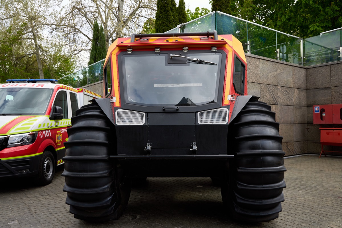 The Sherp ATV is an extreme off road vehicle designed for military and rescue operations in the harshest conditions. It features massive tires that allow it to float on water and conquer deep snow, swamps, and rocky terrain. Its simple yet robust design ensures a long lifespan with minimal maintenance. This vehicle is practically unstoppable in any environment.