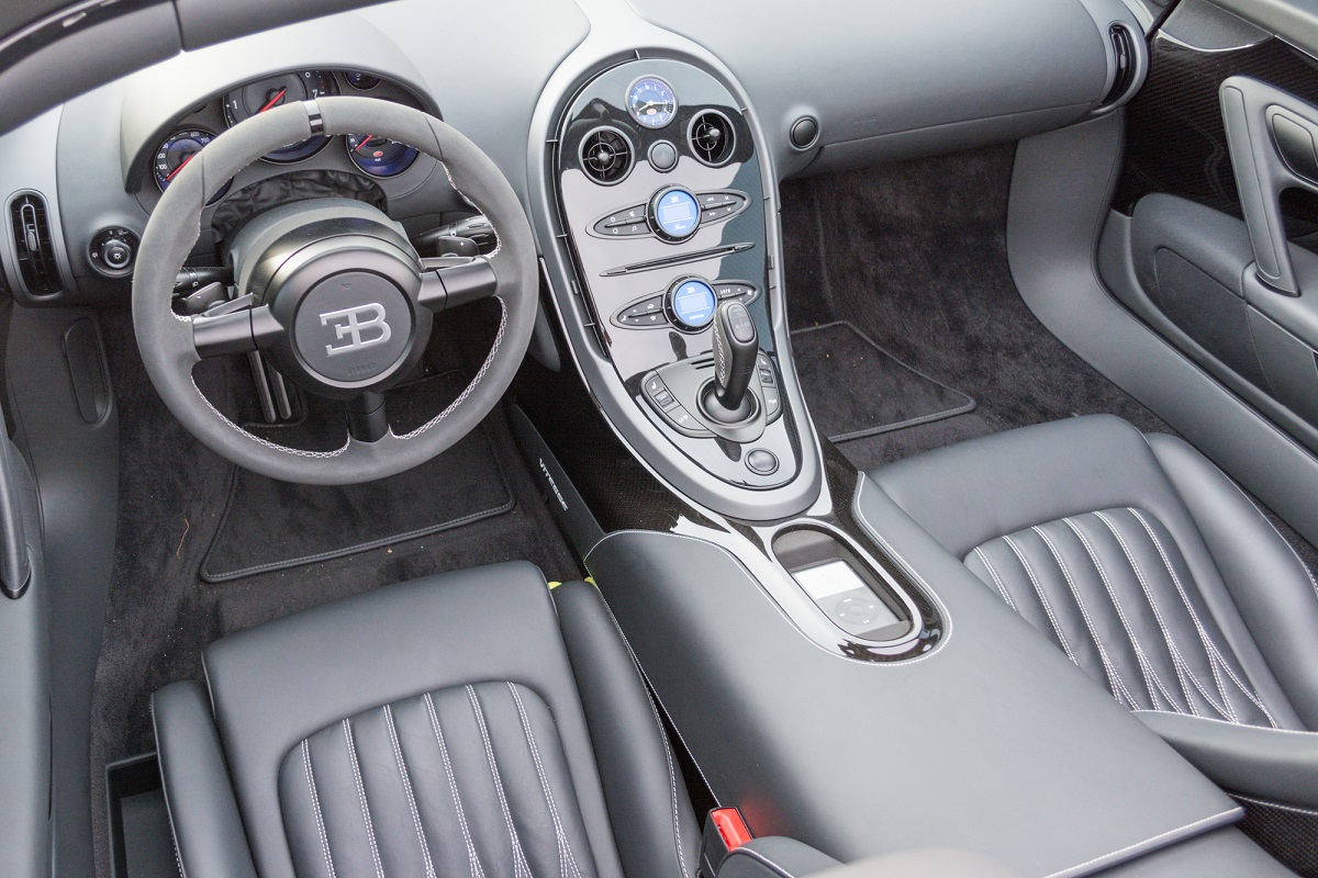 This image shows the interior of the Veyron in a way that few performance cars ever achieve, lavishly detailed, impeccably finished, and unmistakably elegant. The use of fine leather, aluminum accents, and symmetrical design makes the cabin feel more like a high-end lounge than a speed machine. Yet every gauge and switch is tailored for ultimate control.